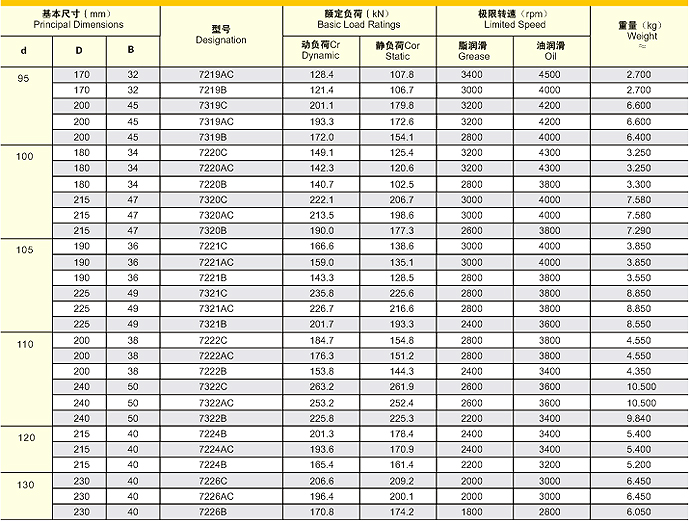 单列角接触球轴承