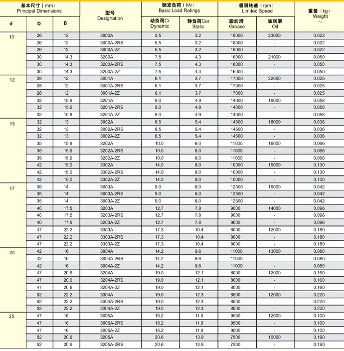 双列角接触球轴承