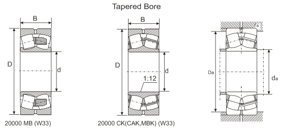 CA  The alternative design of the second generation, these bearings feature a precision machined brass cage and strengthened  symmetric roller and are equivalent to C design in load ratings. They are used to exchange with C design, particularly for large sizes.