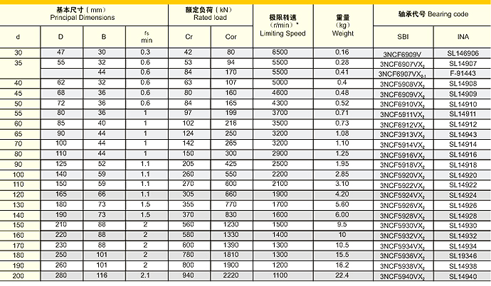 | The values in the table are for oil lubricant, the grease lubricant values are 50% of these values. |